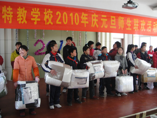 为迎接新年的到来,丰富师生文化生活,我校开展了庆元旦迎新年联欢会,师生同台演出尽展素质教育成果,学校还给每位残疾学生赠送了牛奶,给住校学生发放了新棉被。