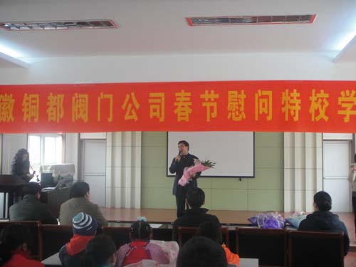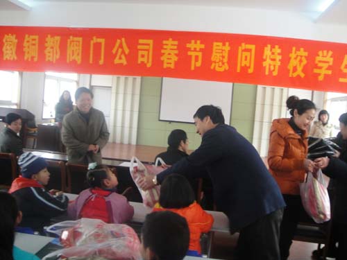 元月22日,安徽铜都阀门公司领导再度走进我校,把爱心和温暖送给每个残疾孩子,该公司给每个残疾学生送来了价值贰万余元的衣物、牛奶和大礼包,并向学校捐赠一万元现金用于改善办学条件,这已是连续四年春节慰问我校残疾学生。他们的善举让每个残疾孩子深深感受到社会大家庭的温暖,必将激励残疾学生自强、自立。