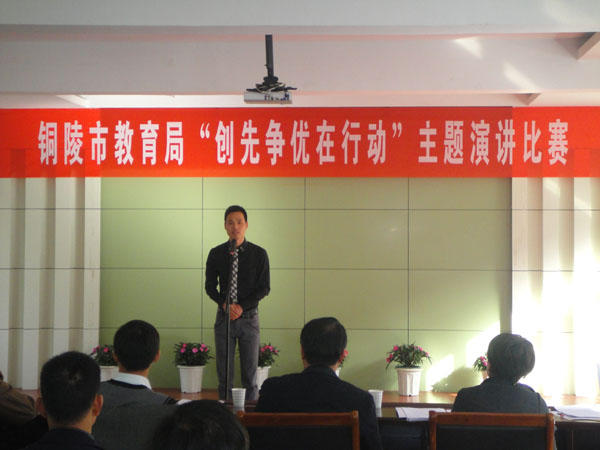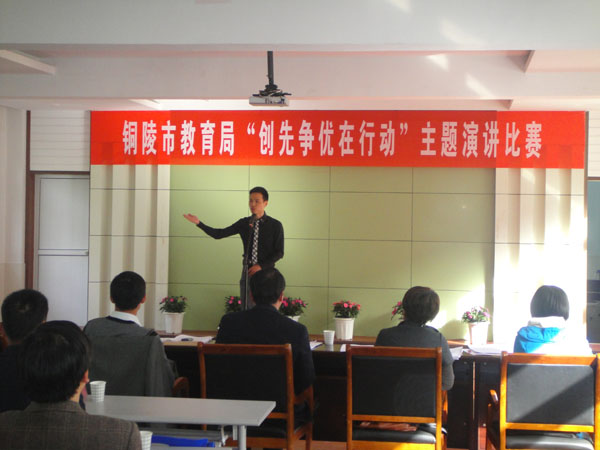 ,市教育局“创先争优在行动”演讲比赛在我校举行,共有市直各校