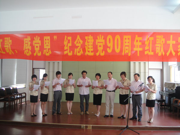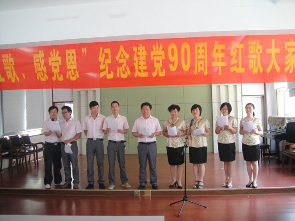 为纪念中国共产党诞辰90周年,促进全体教职工对党的宗旨性质、奋斗历程的认识,充分发挥“一首红歌一面旗,一支红曲一把号”的作用。6月27日上午,市特校在学生活动中心隆重举行“唱红歌、感党恩”纪念建党90周年红歌大家唱活动,党员教师、各教研组分别表演,最后全体教师合唱《爱我中华》结束大家唱活动。