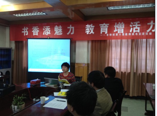 4月7日下午,市特校第六届读书交流活动正式启动,第一期由学校办公会成员交流读书心得,交流书籍为《创新型学校给学校管理的9个策略》,每位同志都将学习所获制成课件,利用多媒体进行汇报学习心得。