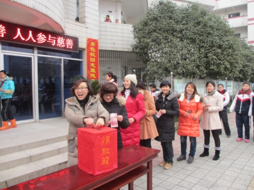 为积极响应市委、市政府“慈善一日捐”活动倡议,元月17日上午,市特校在操场举行了慈善捐款仪式,以校领导、中层干部、教研组为单位,本着自主自愿的原则,教师们慷慨解囊,捐出自己一天的工资,共捐出善款近4000元。