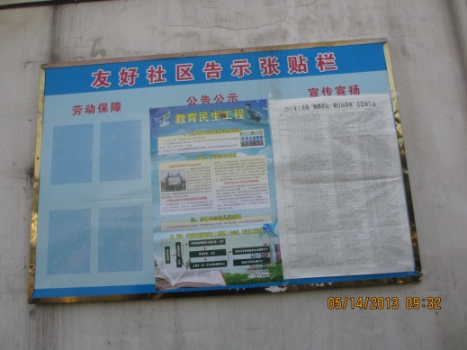 为了进一步提高教育民生工程各项政策的社会知晓度,我校根据市教育局民生工程宣传工作方案,在5月13日至5月18日开展了系列宣传活动。周一召开了办公会、教师会,成立了领导小组;各班召开了班队会、家长会讲解了三项教育民生工程。周二校园宣传栏张贴了宣传画,电子显示屏滚动播放宣传标语。周三组织教师进社区张贴宣传画10张;周六组织教师在社区菜场、超市、路口等地发放宣传资料200张。本次活动的开展,为办人民满意的教育营造了良好氛围。
