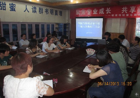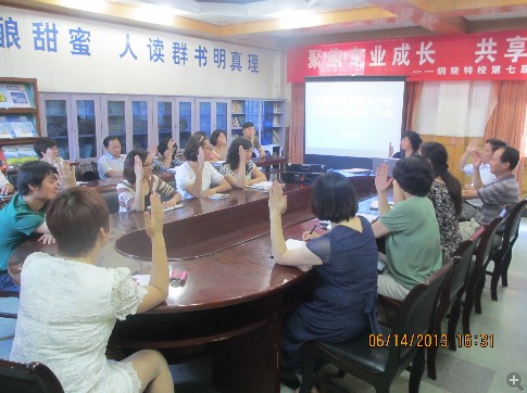 6月14日下午,市特校召开了三届八次教职工大会,大会应到代表31日,实到代表26人,会议一致通过了《市特校教职工聘用工作实施方案》、《市特校教师职业道德考核办法》。