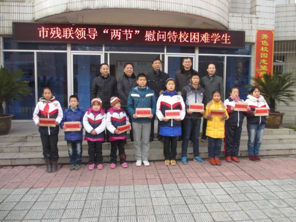为了切实帮助家庭困难的残疾孩子,让他们共享经济发展成果,在春节即将来临之际,市残联理事长一行,来到我校慰问家庭经济困难的残疾学生,为10名学生各送上300元的慰问金。