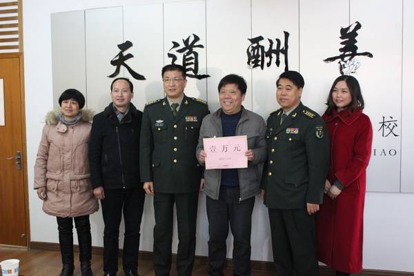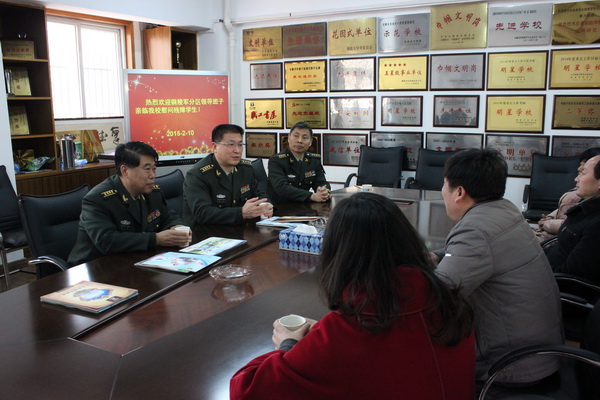 2月10日上午,铜陵军分区领导来到市特校为残疾学生送来了慰问金一万元。市特校校长曹厚平代表全校师生对铜陵军分区领导的善举表示诚挚的感谢,并汇报了2014年学校取得的成绩,表示将努力办好人民满意的特殊教育学校。军分区领导表示今后将继续尽己所能帮助特校更好的发展。