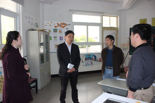 4月18日,省教育厅基教处马家松科长与市教育局刘青松副局长一行来到我校进行调研指导。他们实地查看了学校的基础设施建设与校园环境。曹厚平校长就学校的教育教学工作和新校区建设工作进行了汇报。