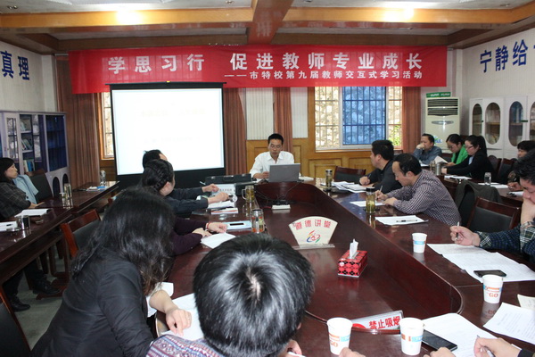 为认真学习贯彻党的十八届四中全会、全国“两会”和习近平总书记“四个全面”重要讲话精神,加强学习型学校建设,积极参与全市第十届“读书节”活动,纪念“世界读书日”,市特校举办了第九届第二次教师交互式学习活动。