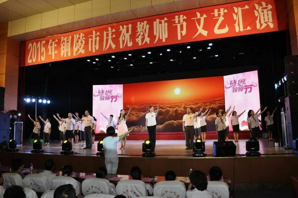 2015年9月6日,铜陵市庆祝第31个教师节文艺汇演在市政府行政会议中心举行,特校的原创节目音诗画《天道酬善》,排在序曲大合唱后,园丁篇第一档。
