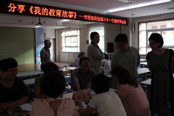 督导组对学校教育教学、阳光招生、校园安全、食堂卫生等工作进行了全面检查并听取了曹厚平校长关于开学以来学校整体情况的工作汇报。督导组领导对市特校工作稳定、健康发展的良好势头作了充分肯定,对学校狠抓教师培训和校园文化建设等工作所取得的成绩予以高度赞扬。肯定了学校送教上门工作。同时也对学校的工作提出了中肯的意见。随后市教育督导组还参加了市特校为庆祝教师节开展的“我们的教育故事”专题研讨活动。