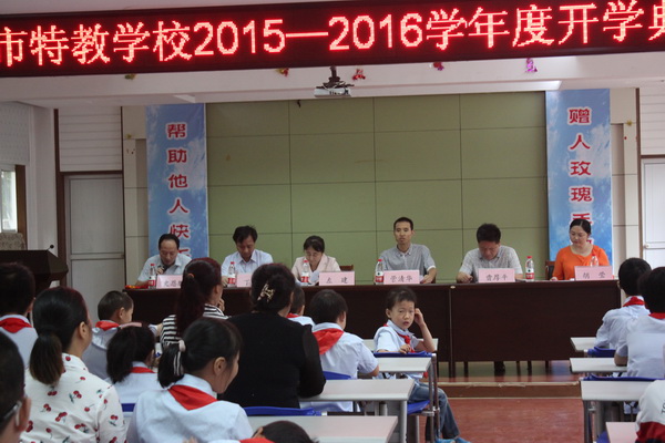 9月12日上午,市特校举行了2015-2016学年度开学典礼。市教育局党委委员、副局长管清华、组织人事科科长左健、宣教科科长丁卫东应邀到会并指导了新学年工作。
