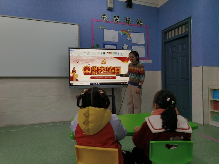 学校利用法治宣传栏、电子屏幕等宣传宪法知识,通过微信、QQ等教师群、班级群弘扬宪法精神,努力做到不仅让学生了解宪法,也让教师、家长积极参与宪法的学习。