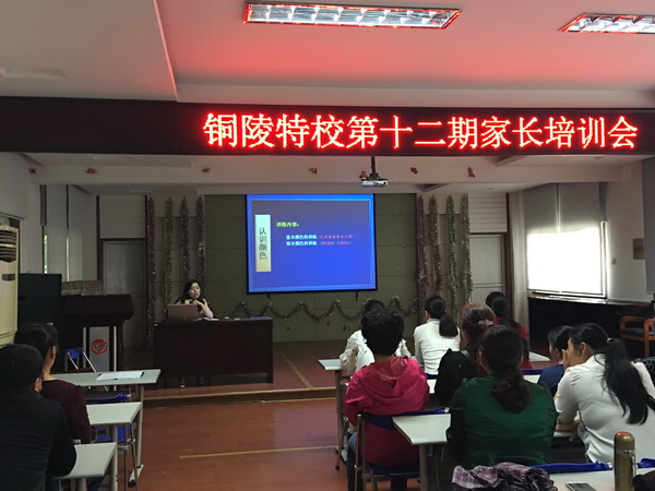 5月27日下午,铜陵特教学校在学生活动中心二楼举行了第十二次家长培训活动。本次培训的主题是《特殊儿童的认知训练》,由培智部的章琳老师就特殊儿童认知能力的发展特点及训练需求向家长做详细介绍,并结合具体的教学设计,展示了众多典型的特殊儿童认知训练案例,受到家长们的一致好评。