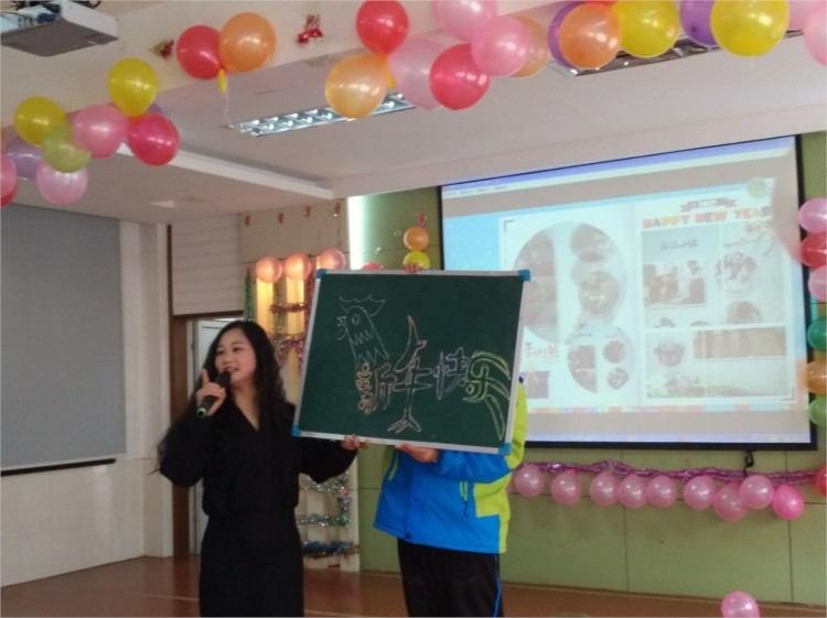 庆祝活动分为学生才艺展示和生活自理能力展示两个部分。首先曹厚平校长向全体师生致以热情洋溢的新年祝福;接着学生才艺展示部分由九个精彩纷呈的节目组成,这些节目有的是学校艺术课堂的成果展示,如美术组的师生同台作画,短短的几分钟时间学生现场向我们呈现出精彩的作品《金鸡贺春》;舞蹈组的拉丁舞技巧性高,爆发力强,这个舞蹈竟是几个听不见说不出的听障孩子们演绎出来的,真是让人眼前一亮;有的是学校律动与唱游课的课程成果展示,智障孩子们无论在表现力、节奏感还是协调性上都充分凸显了学校课堂教学的成果;有的是学生讲故事比赛的获奖作品,在故事表演中,我们惊喜地发现孩子们在角色扮演、内心把握和语言表达等方面都特别出彩。最后是智障学生生活自理能力的展示,有低年级的剥桔子、开关锁、刨铅笔、剥花生等项目,中年级的撑雨伞、扎辫子、系鞋带、叠衣服等项目,孩子们每人展示了一个最拿手的项目,享受到了自己的事情自己做带来的快乐。整场活动在轻松愉悦的氛围中圆满结束。