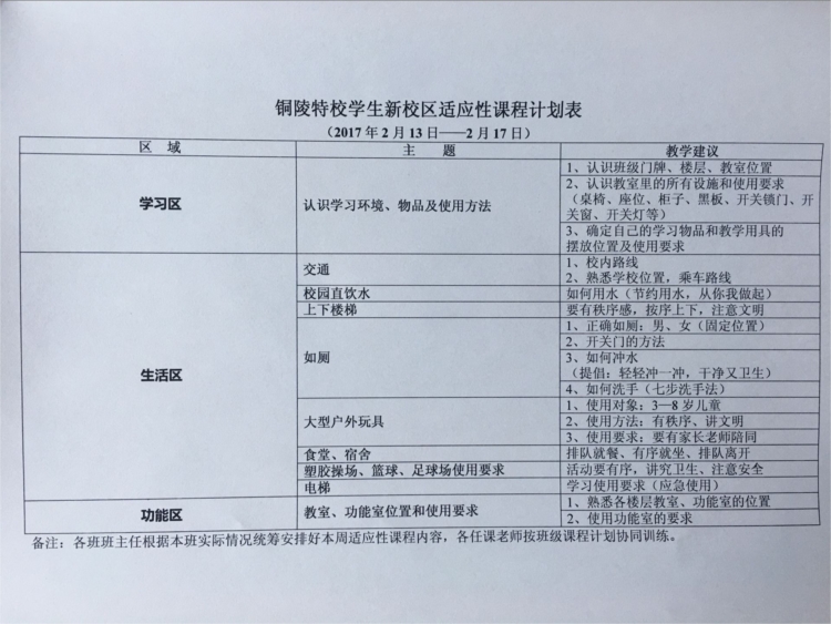 铜陵特校学生新校区适应性课程计划表