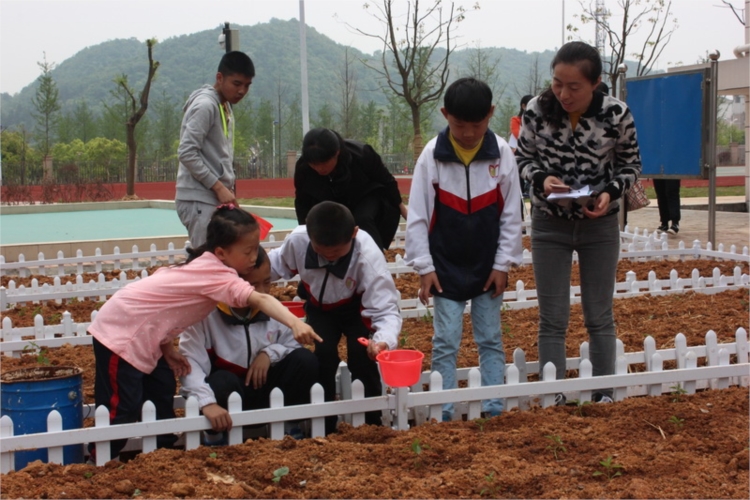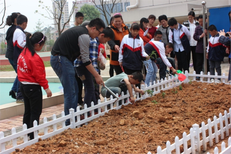 活动开始了,首先由每个班级的老师将本班准备种植的蔬菜种类带领学生认读,有蔬菜的幼苗,有成熟后的果实,还有各类蔬菜的名称,家长们积极配合将蔬菜幼苗和图片文字配对帮助孩子们进一步认识蔬菜。接下来就是老师和家长亲自带学生去菜园里实践,家长指导,老师手把手教学生,体验挖土、播种、浇水等种植蔬菜幼苗的过程。低年级的学生边种边说着蔬菜的名称,高年级的学生用“我会种西红柿、我给蔬菜浇水”等句子表达种植的过程。学生们在教师和家长的辅助下,不仅提升语言表达能力,拓展了学生的认知,还锻炼了自身的劳动技能,真正的让孩子从理论走向实践。