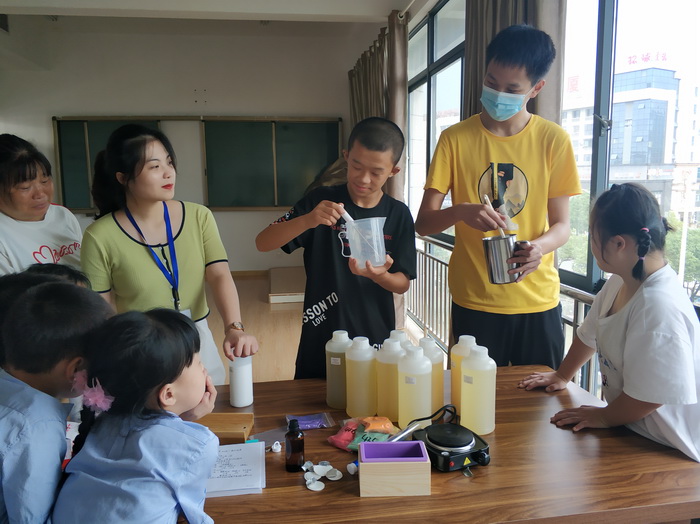 此次课程改革的深化主要体现在走班课程的开设以及学生的培养目标上。本学期走班课程分为上午和下午两个部分,分别从孩子们的兴趣、特长、技能和康复需要等方面进行有针对性的训练。上午的走班课程有非洲鼓和特奥训练两个特长班;下午的课程有形体训练、面点制作、简单刺绣、手工皂制作、线描画、科学实验共14门课程,充分尊重了学生的个体差异,注重了学生的潜能开发,落实了培智学校义务教育课程改革精神。