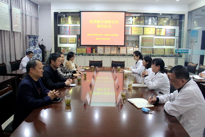 於凤霞对特校一行的到来表示热烈欢迎,并介绍了医院的基本情况。她指出“医康融合”在特殊儿童的康复教育中具有重要意义,校院合作能很好地将医学康复与教育康复有机结合。陈浩表示,将全面加强学校与医院在教学、医学康复等方面的融合,在学科建设、师资队伍建设等方面给予积极支持,遵循优势互补、资源共享的原则,全面加快创新融合、协同发展的步伐,从而促进特殊儿童综合能力的提升。