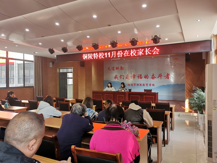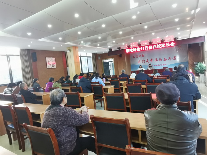 家校携手,沟通合作,是学校工作中必不可少的一个部分。为促进学校和在校家长之间的联系与沟通,市特校开学时便制定了一月一次的家长会安排。11月15日上午,市特校召开了11月份的在校家长会。会议由副校长汪素华主持,安全科负责人王嘉瑶和全体陪读家长参加。