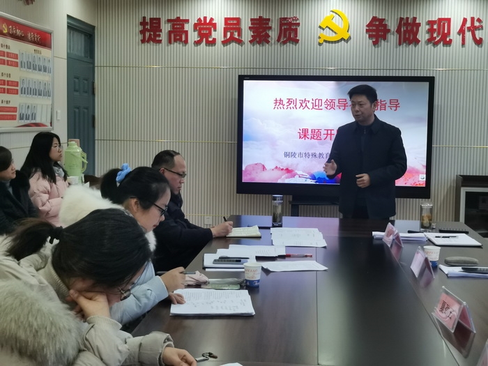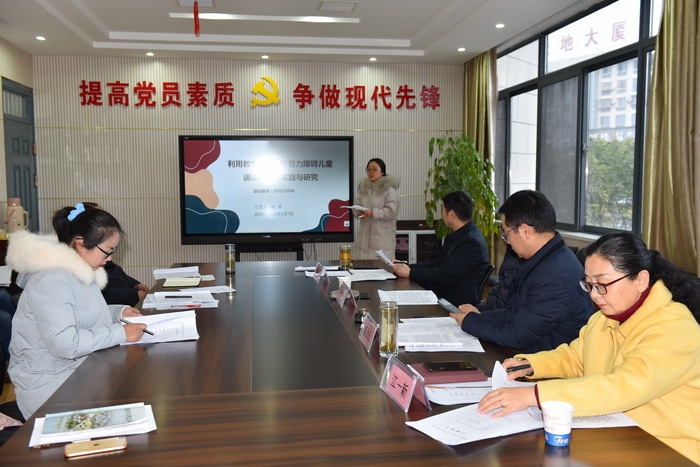 1月7日下午午,2021年度铜陵特校立项的2个省级课题项目《创新特教学校康教一体多向融合模式的实践与研究》、《依托信息技术提升智残儿童综合素养的实践研究》和2个市级课题项目《利用教学辅具提升智力障碍儿童诵读能力的实践与研究》、《依托精细动作训练培养智障儿童自我服务能力的实践研究》在该校党工团活动室举行了集体开题活动。由市教育局教科所所长夏劲云、副所长江一新、市电教馆副馆长张海成、市特教学校校长陈浩4人组成的专家团队对该校的4个课题进行了详细而专业的评议和指导。
