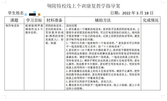 为保障线上教学,居家康复的教学效果和质量,市特教学校在做好疫情防控的同时,通过制定线上教学康复方案及计划、制作各学科课件、统计线上教学日反馈等各种方式保障线上康复教学工作的扎实推进,确保线上康复教学有条不稳地开展。