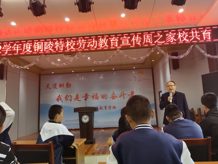 5月13日上午,铜陵特校开展了“劳动教育宣传周之家校共育”专题讲座,讲座由培智六年级家长主讲,培智部六、七、八年级学生及其陪读家长参加了活动。