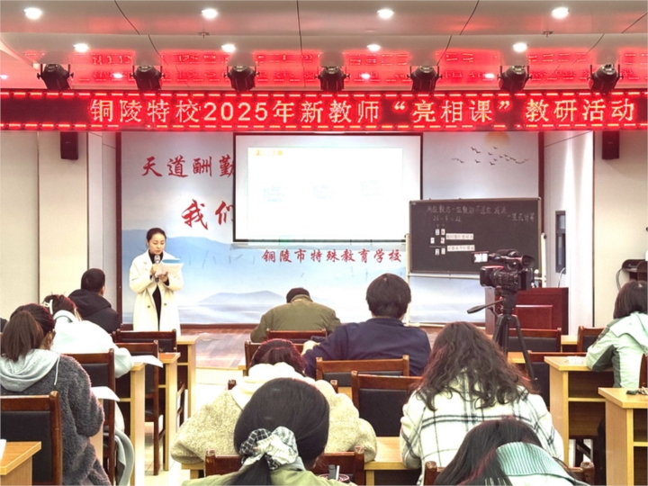 为深入贯彻落实《铜陵市新教师教学能力三年提升行动方案》,铜陵市特殊教育学校于11月24日下午举办了新教师亮相课活动。此次活动以“以爱启智·以研促教——新教师教学能力展示与成长”为主题,旨在展示新教师专业素养,搭建教师交流平台,促进特殊教育课堂教学改革。