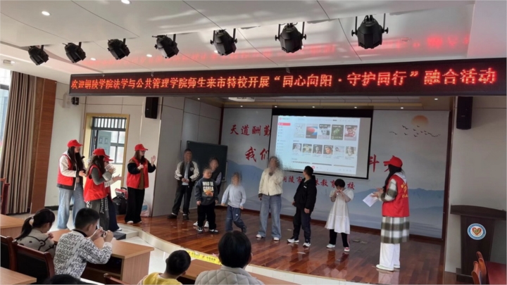 3月25日下午,铜陵学院法学与公共管理学院15名学生志愿者走进我校,联合开展了“童心向阳·守护同行”弱势儿童关爱公益活动。
